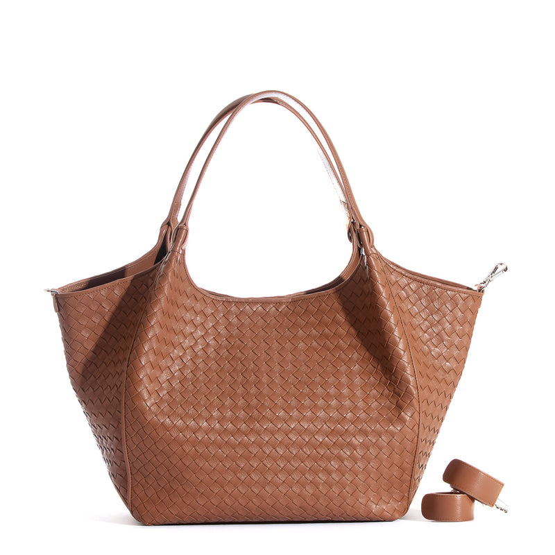 Mary Poppins Shopper Flechtleder cognac mit und ohne Wickeltasche